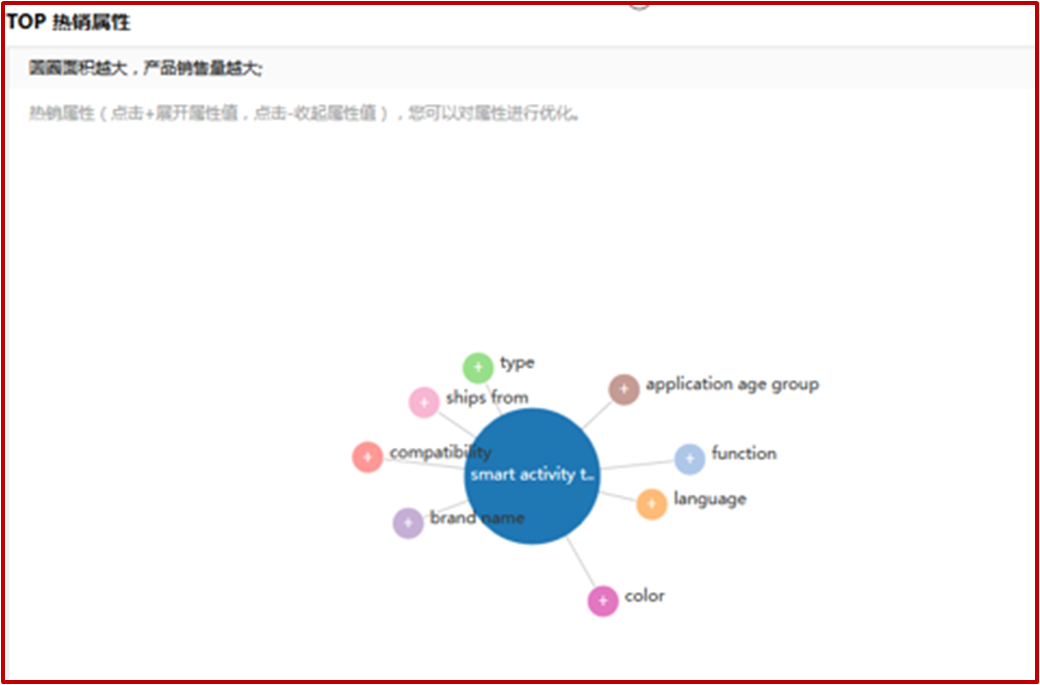 点开后属性值的圈越大表示搜索量越高;同一类颜