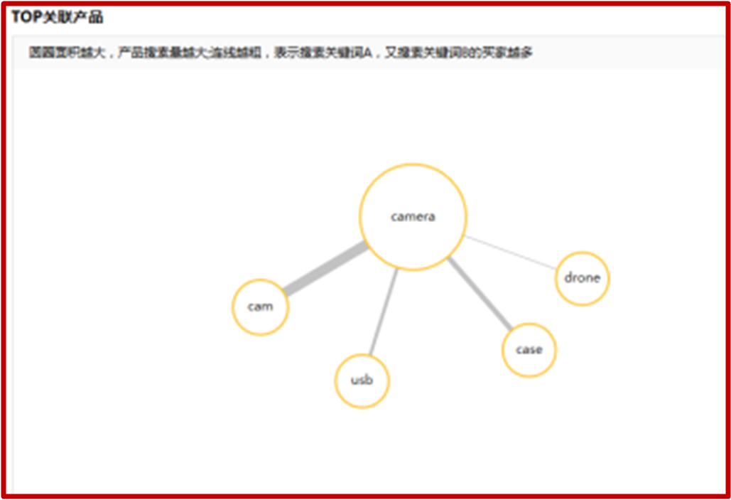 家同时浏览、点击、购买的人越多。圆圈越
