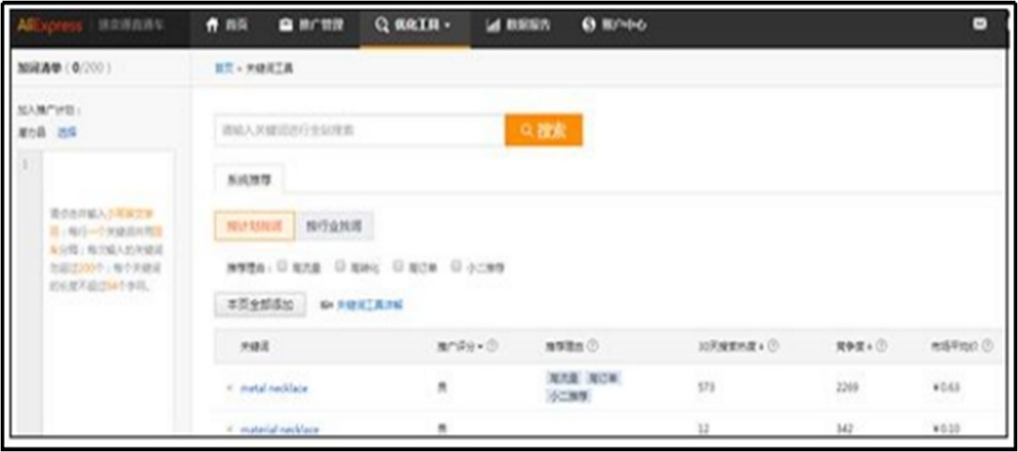 关键字工具专为速卖通直通车用户设计的找词工具,使用率