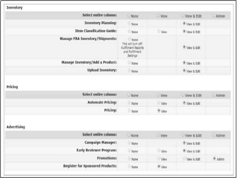 在子账号权限设置中,可以设置包括Inventory(库存),