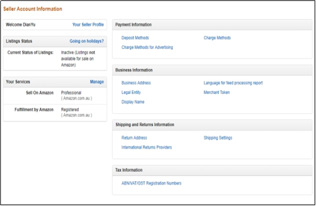 Design(店铺设计),Amazon Pay(亚马逊付款),Reports(报表