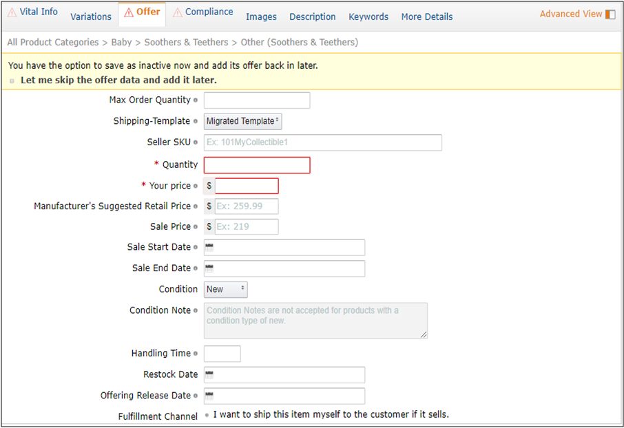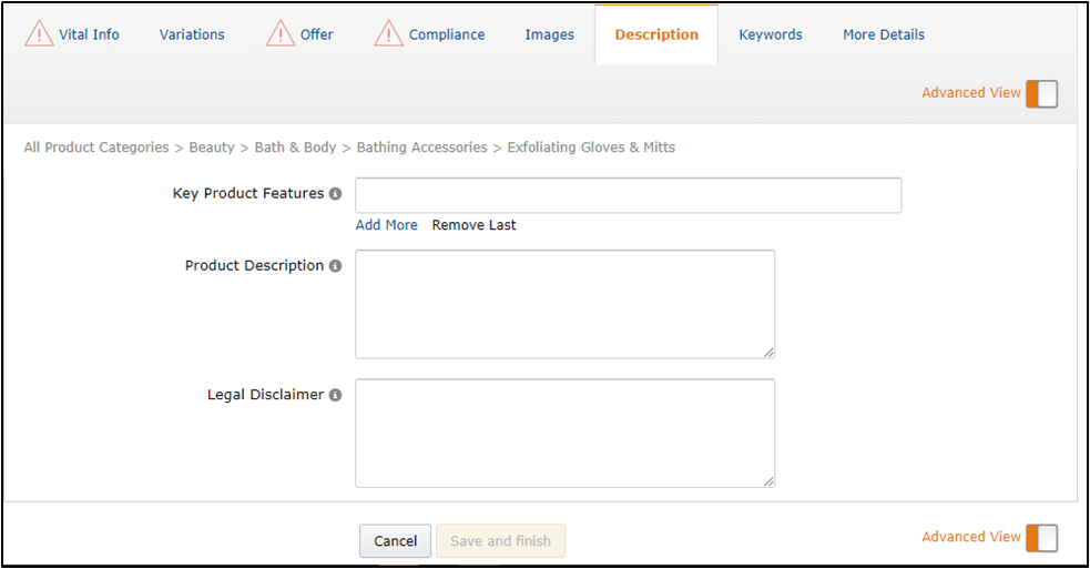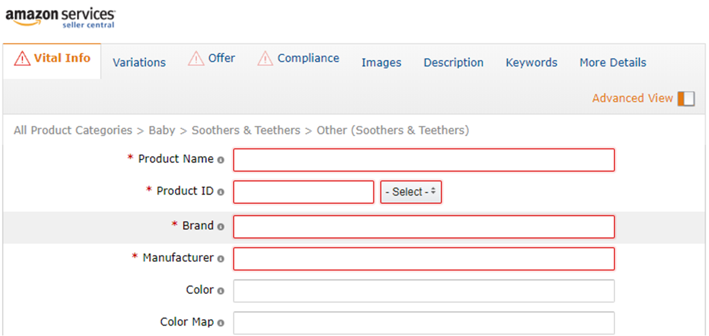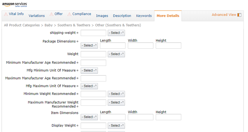Advanced View默认为不开启,开启状态可以输入更多的产品信息