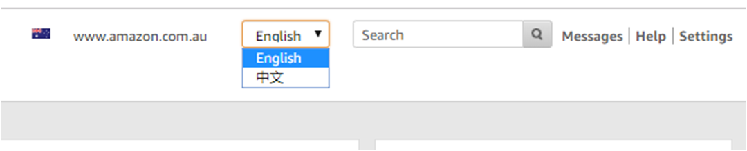 登入卖家后台后,一般默认的语言应该是英语界面,如果需要其他语言可以在后台右上角选择语言,下面我们以选择“中文”,方便操作。