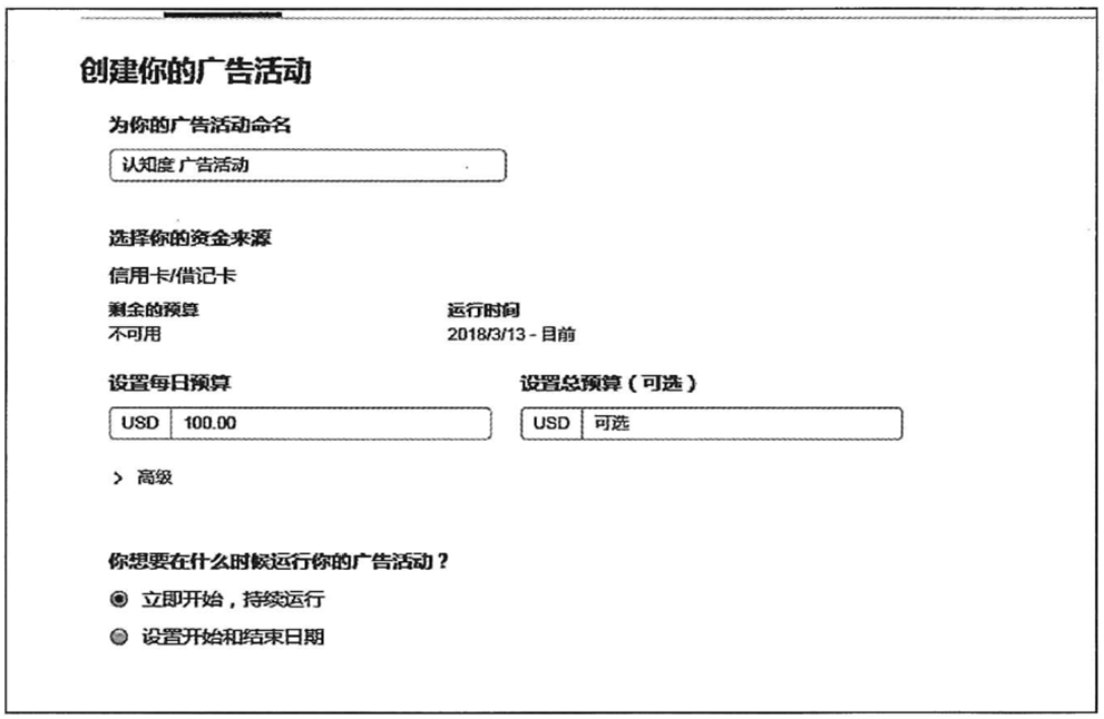 告活动命名,并选择你的资金来