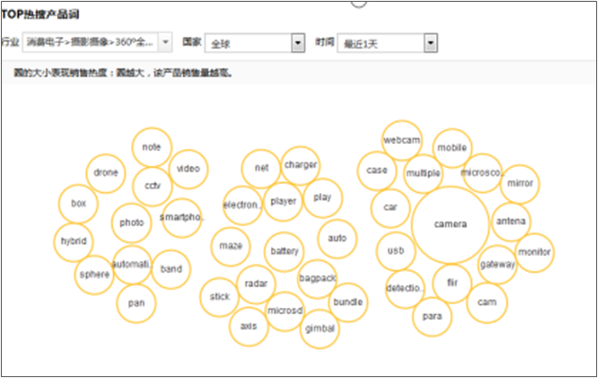 数据纵横选品专家中,可以看到TOP热销产品词和TOP热搜产品词,通过