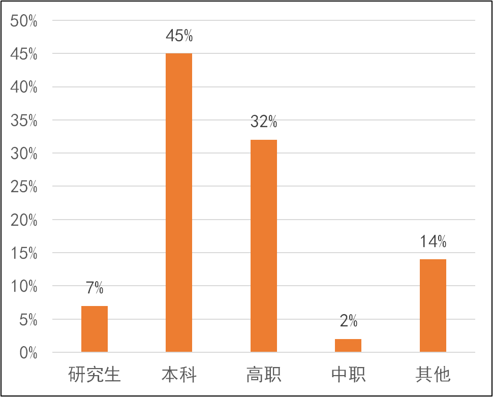 段,其次是研究生学历及中职等其