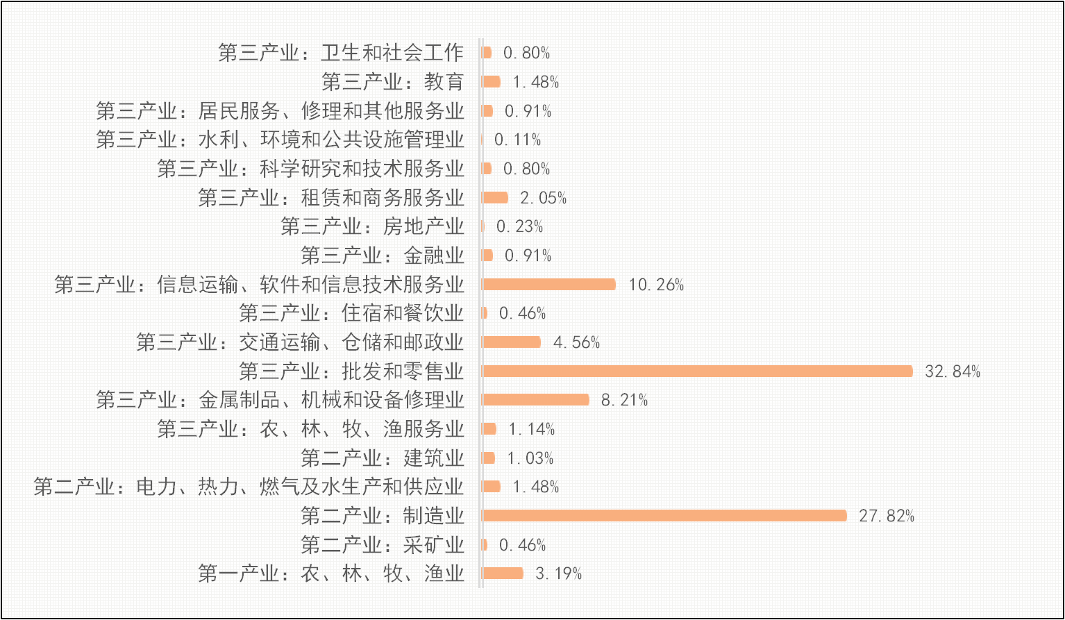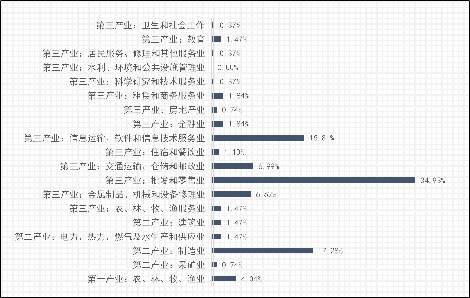 2、信息传输、软件和信息技术服务业,交通运输、仓储和邮政业参与度也比较