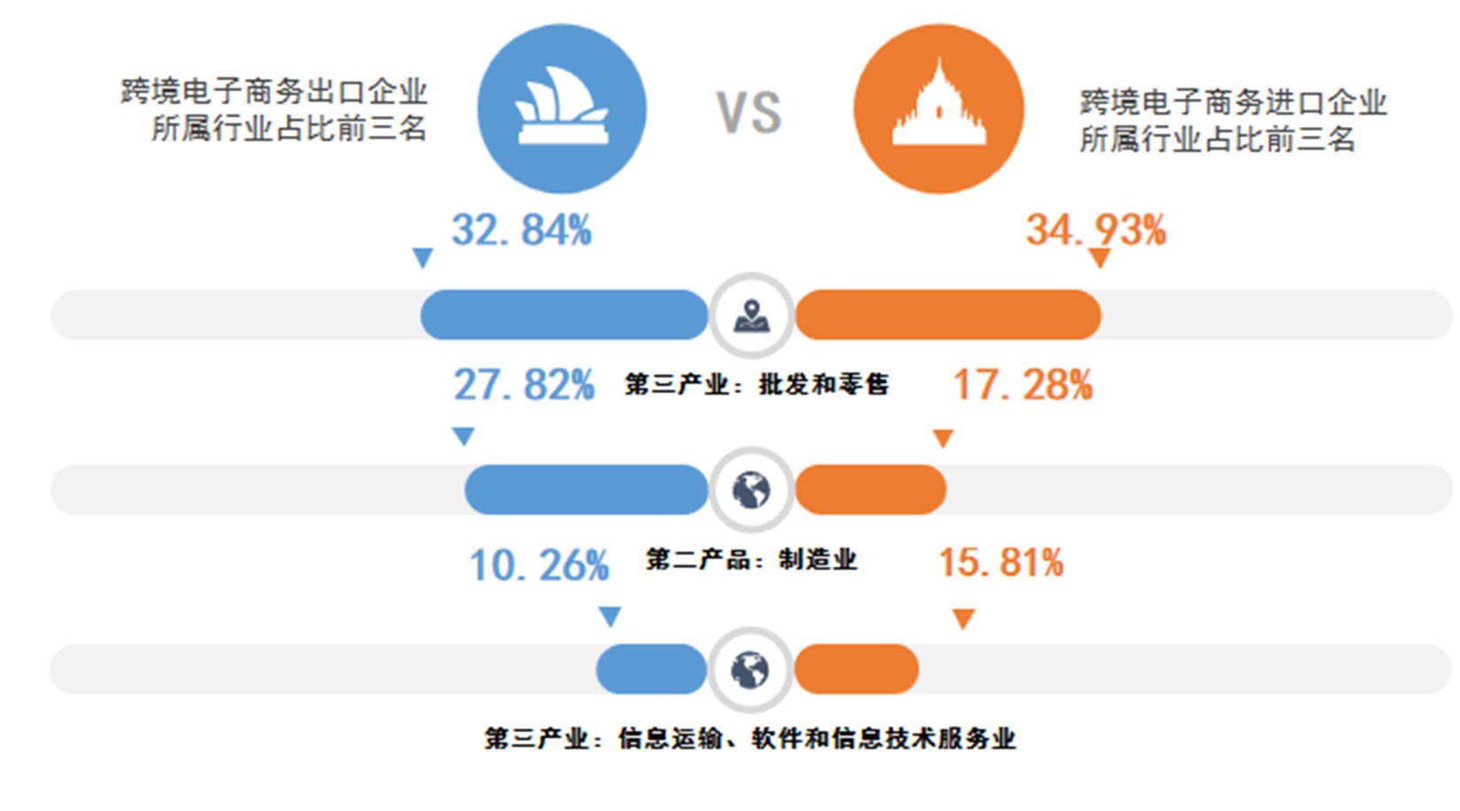 从跨境电子商务进出口企业所属行业分布比较发现: