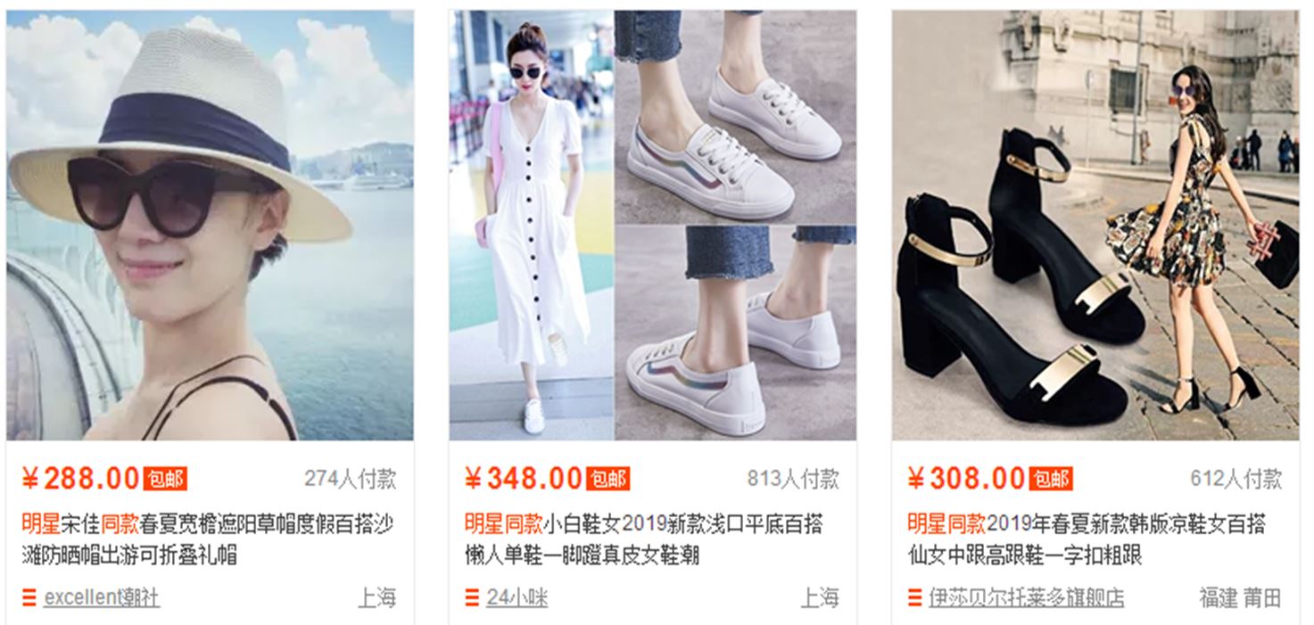 明星们穿的衣服,淘宝上就非常容易出现某明星同款,如上图。