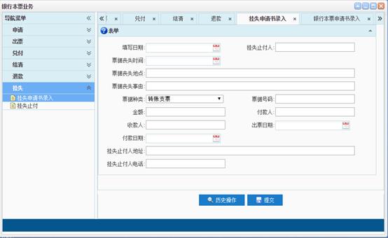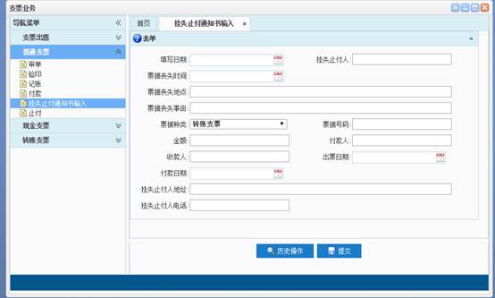 七、普通支票--挂失止付通知书输入